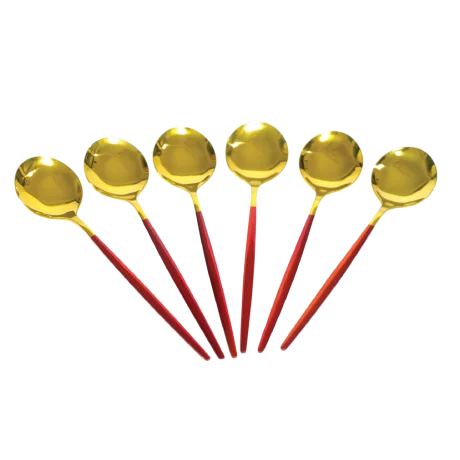 Aminsuk RoyalGold Red Handle Soup Spoon Set (6 Pieces)