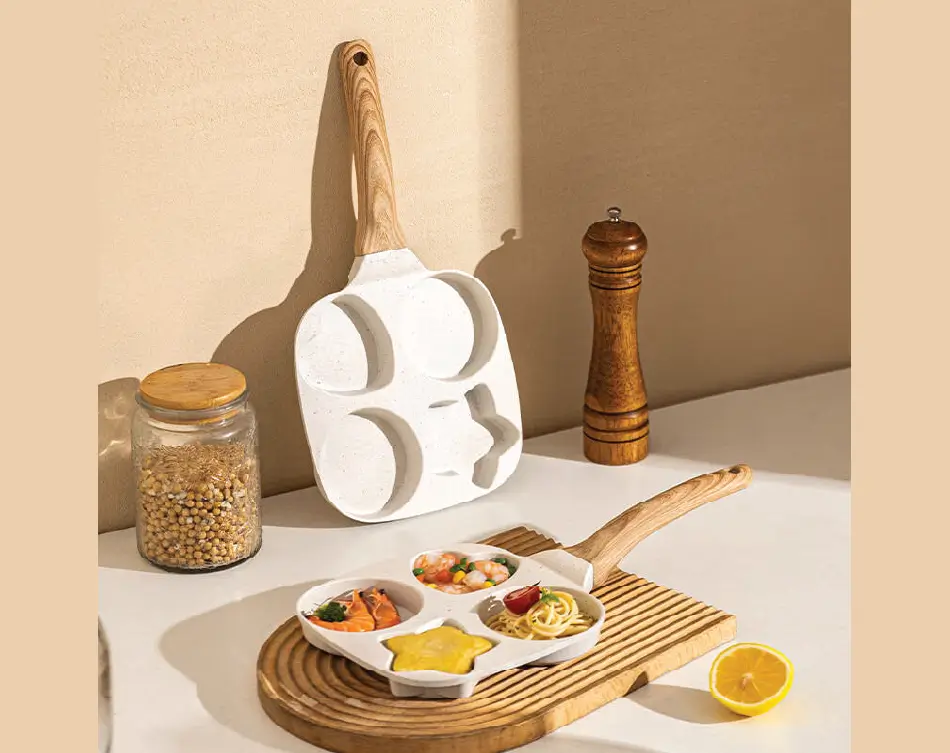 উচ্চমানের কাস্ট অ্যালুমিনিয়াম, মার্বেল নন–স্টিক কোটিং, এবং হিট–রেজিস্ট্যান্ট উডেন হ্যান্ডেল—সব মিলিয়ে এটি একটি প্রিমিয়াম গ্রেড কুকওয়্যার। ডিম ভাজা, প্যানকেক, বার্গার, ওমলেট, মিনি চপ, টোস্ট—যা-ই বানাতে চান, প্রতিবারই পাবেন পারফেক্ট শেপ এবং সমান রান্না।