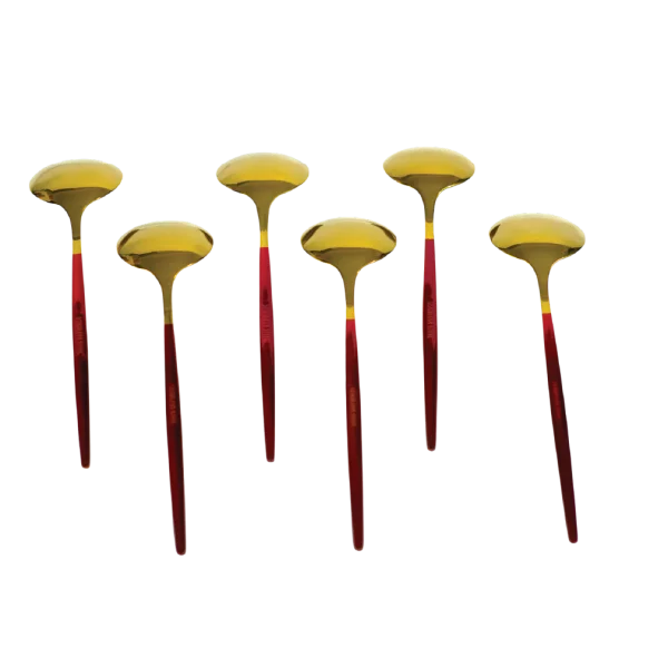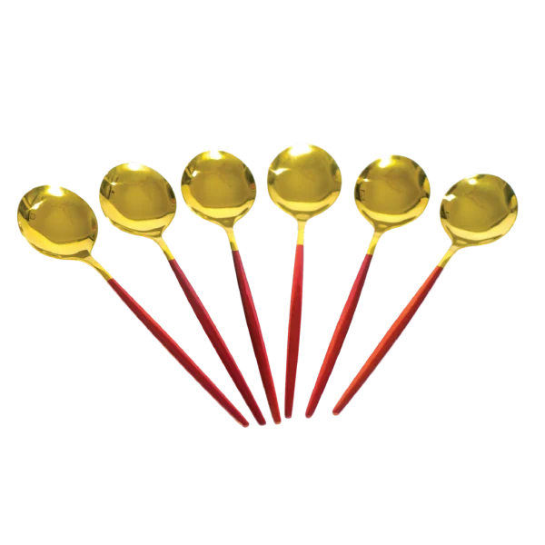 আপনার খাবারের প্রতিটি মুহূর্তকে আরও বিশেষ করে তুলতে Aminsuk নিয়ে এলো Royal Gold লাল হাতল স্যুপ চামচ সেট।